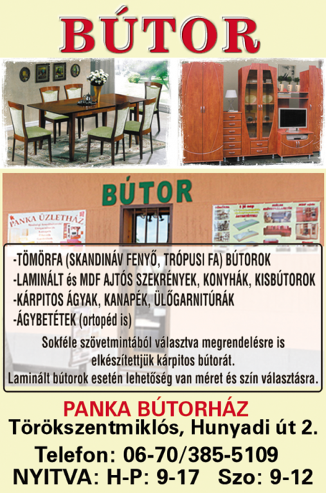 PANKA BÚTORHÁZ TÖRÖKSZENTMIKLÓS HUNYADI ÚT 2.